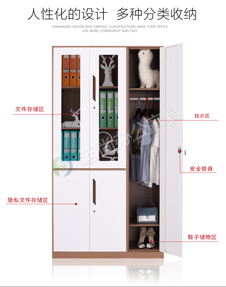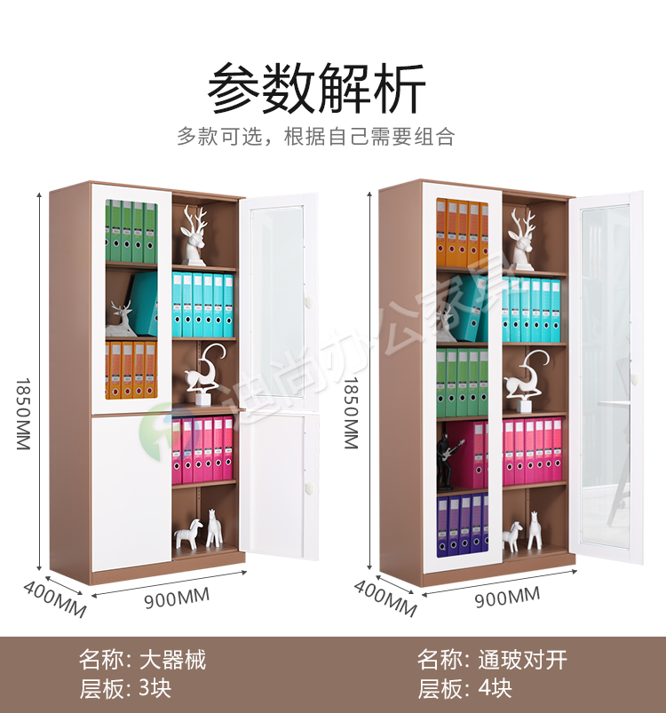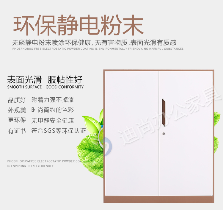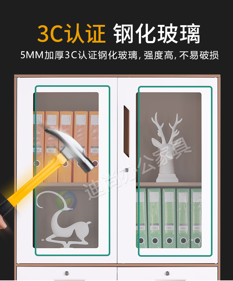 外观专利拉手+钢化玻璃 采用优质冷轧钢板经剪切,冲压,折弯,焊接,装配等九工位精制而成 采用自动喷淋式磷化 粉末静电喷涂,涂膜不易脱落,环保耐用,无毒害,无气味,光洁美观 外观精美,安全系数良好 坚固耐用,承受力强,可存放大量文件资料不变形