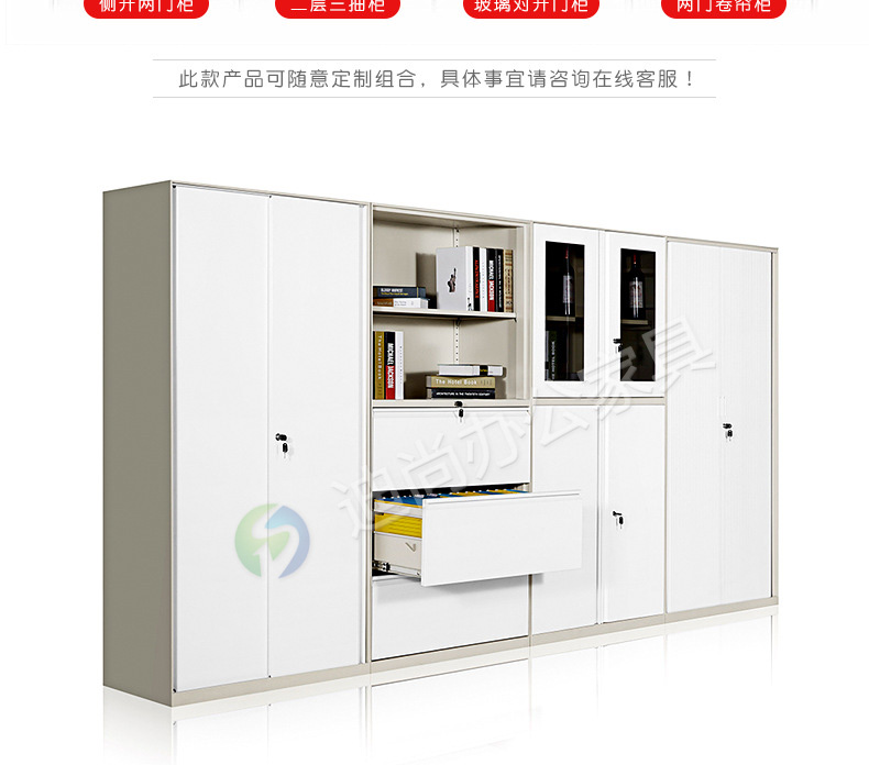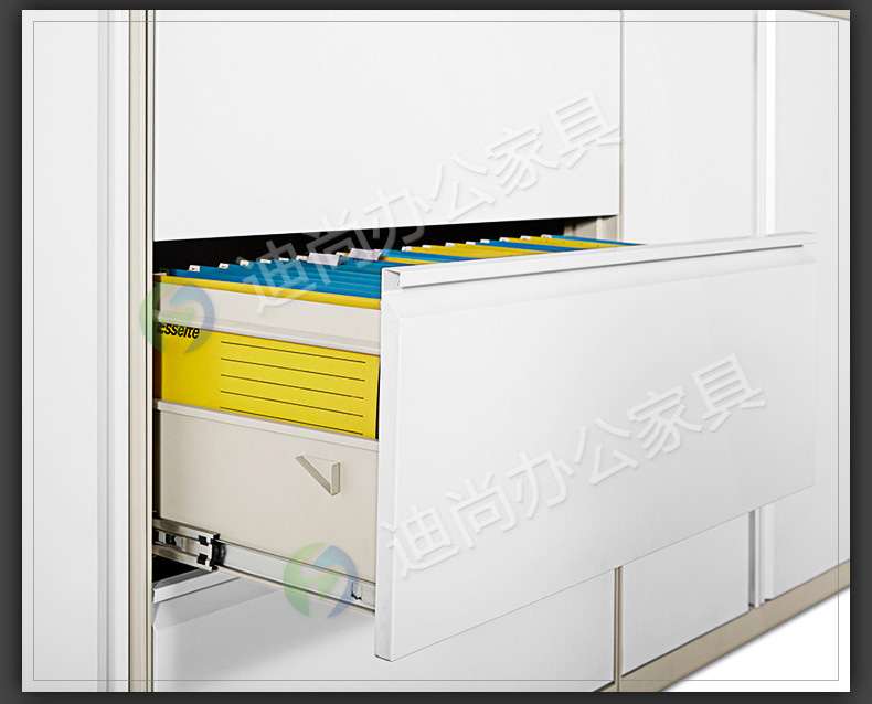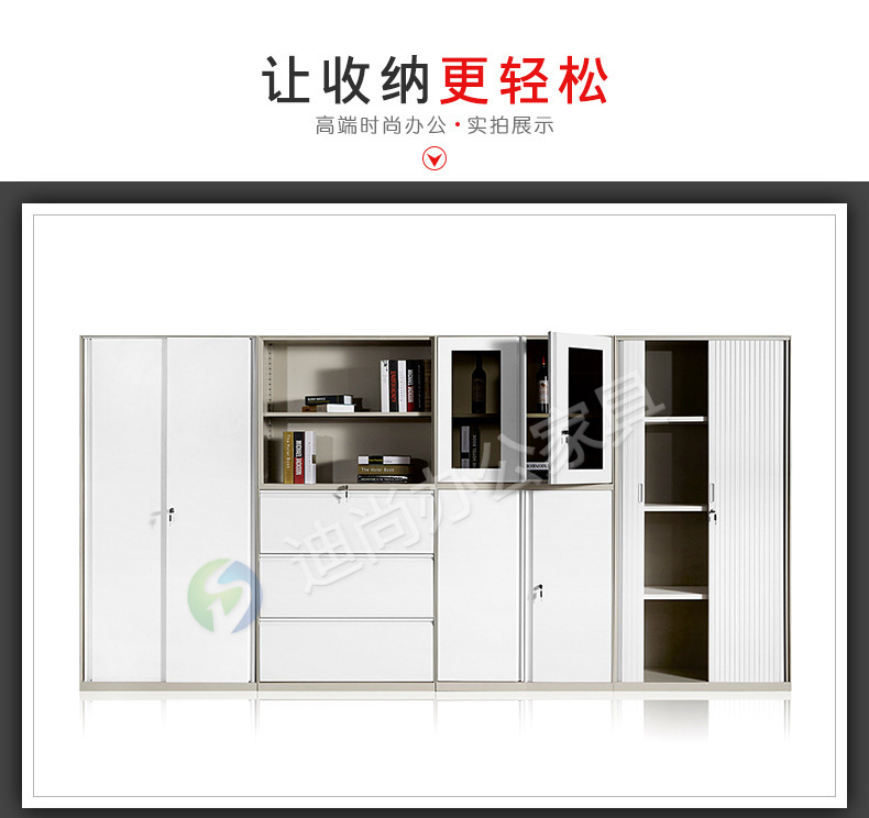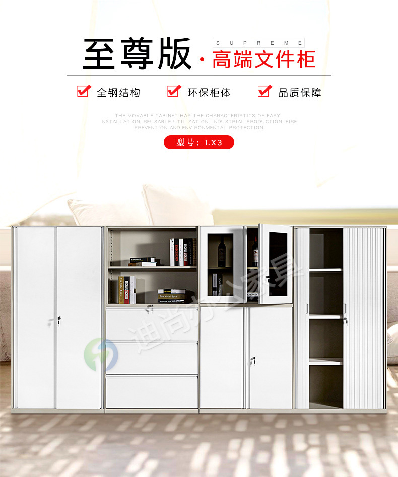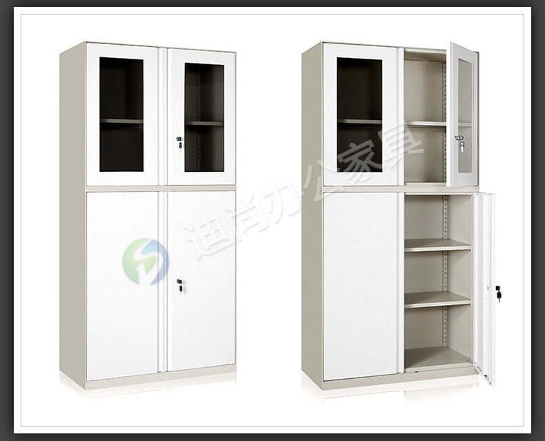 外观专利拉手+钢化玻璃 采用优质冷轧钢板经剪切,冲压,折弯,焊接,装配等九工位精制而成 采用自动喷淋式磷化 粉末静电喷涂,涂膜不易脱落,环保耐用,无毒害,无气味,光洁美观 外观精美,安全系数良好 坚固耐用,承受力强,可存放大量文件资料不变形