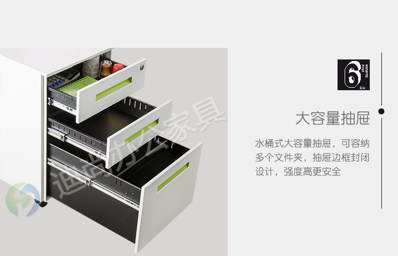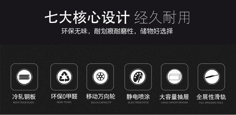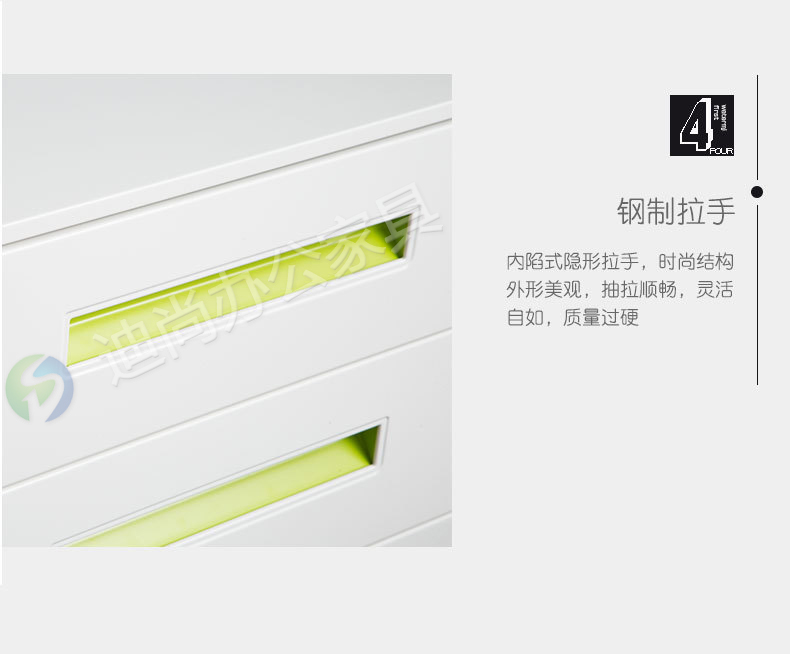 采用优质冷轧钢板经剪切,冲压,折弯,焊接,装配等九工位精制而成 采用自动喷淋式磷化 粉末静电喷涂,涂膜不易脱落,环保耐用,无毒害,无气味,光洁美观 外观精美,安全系数良好 坚固耐用,承受力强,可存放大量文件资料不变形