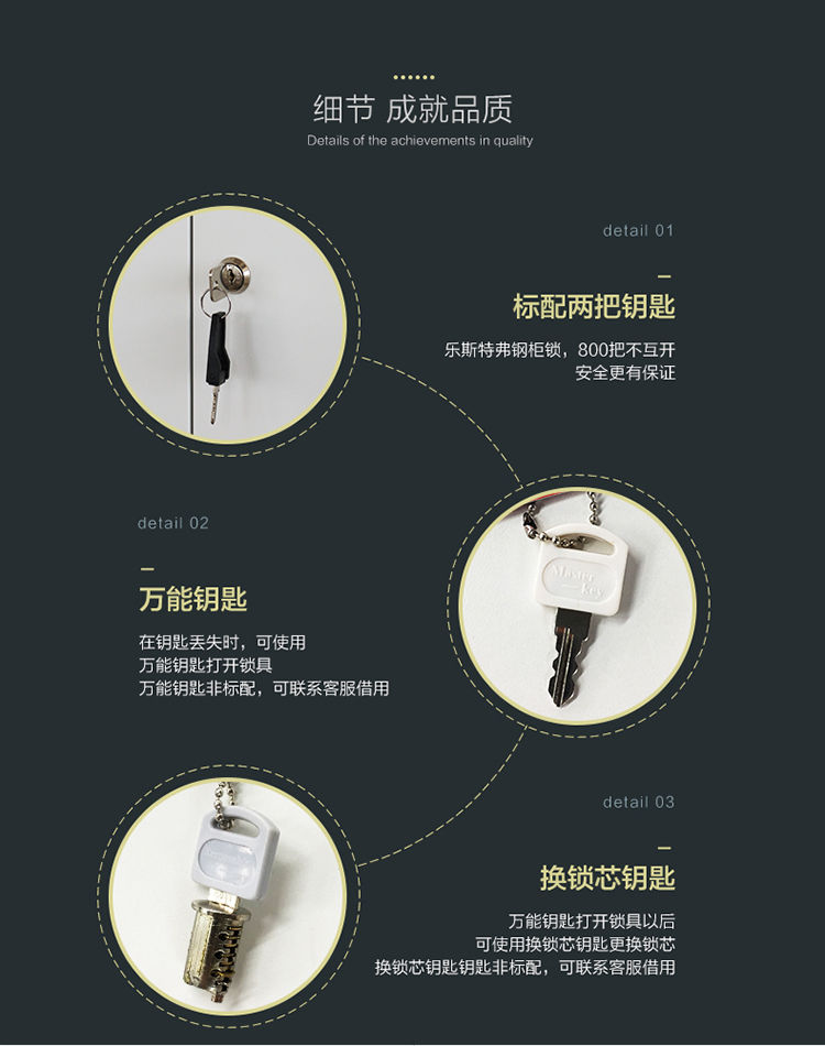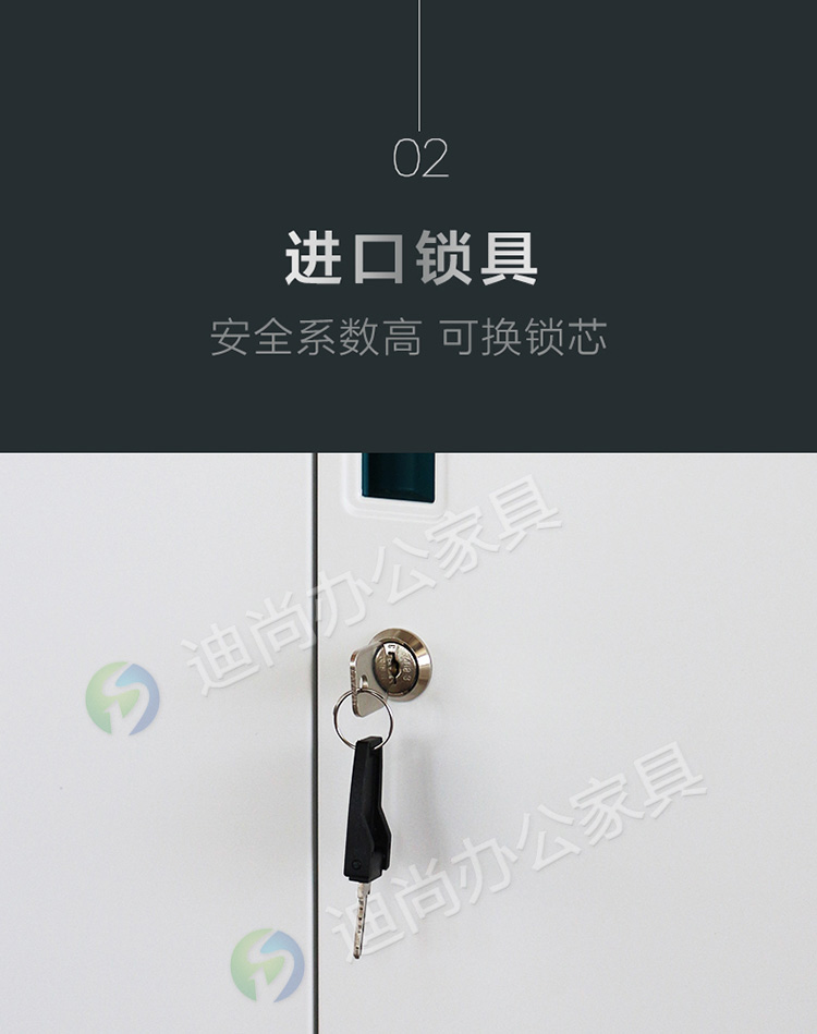 采用优质冷轧钢板经剪切,冲压,折弯,焊接,装配等九工位精制而成 采用自动喷淋式磷化 粉末静电喷涂,涂膜不易脱落,环保耐用,无毒害,无气味,光洁美观 外观精美,安全系数良好 坚固耐用,承受力强,可存放大量文件资料不变形