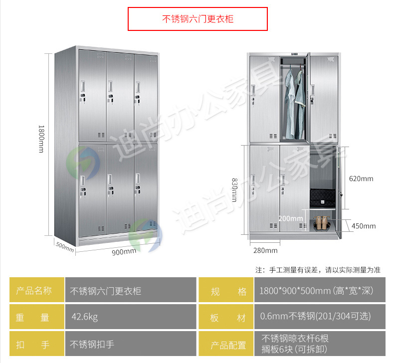 不锈钢六门衣柜