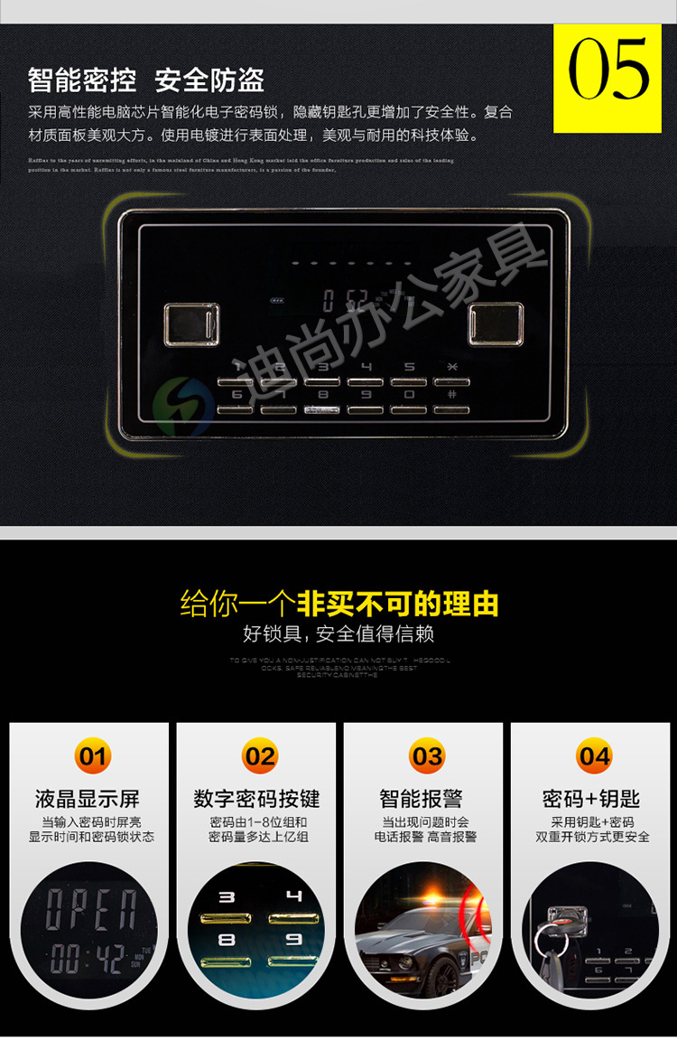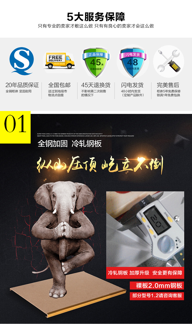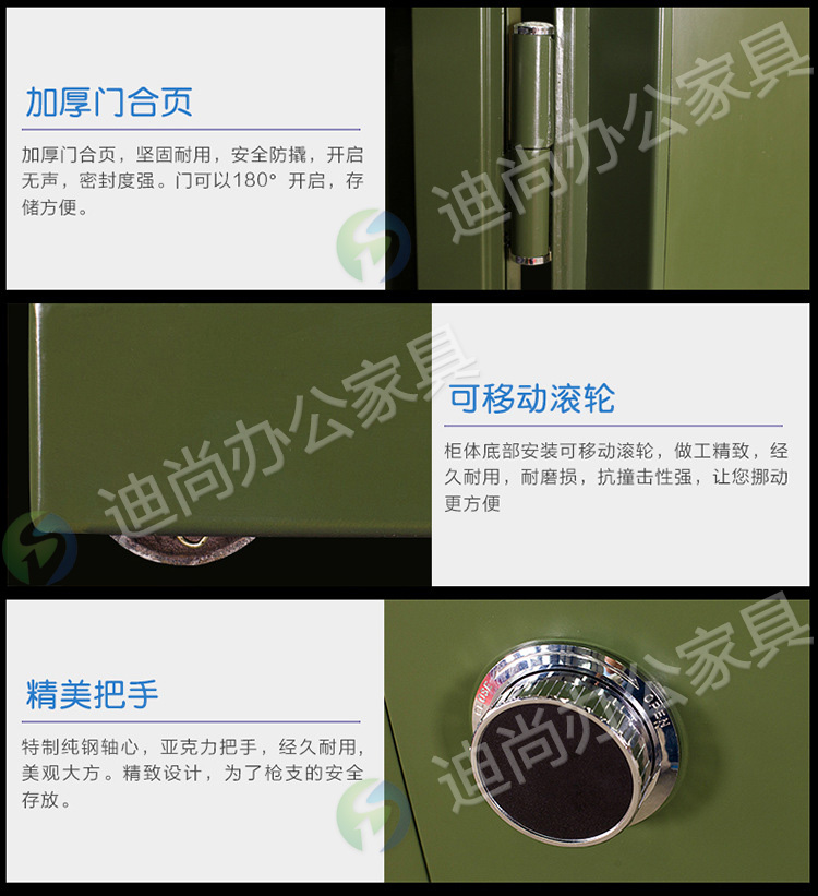 采用优质冷轧钢板经剪切,冲压,折弯,焊接,装配等九工位精制而成 采用自动喷淋式磷化 粉末静电喷涂,涂膜不易脱落,环保耐用,无毒害,无气味,光洁美观 外观精美,安全系数良好 坚固耐用,承受力强,可存放大量文件资料不变形