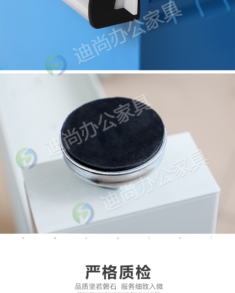 采用优质冷轧钢板经剪切,冲压,折弯,焊接,装配等九工位精制而成 采用自动喷淋式磷化 粉末静电喷涂,涂膜不易脱落,环保耐用,无毒害,无气味,光洁美观 外观精美,安全系数良好 坚固耐用,承受力强,可存放大量文件资料不变形