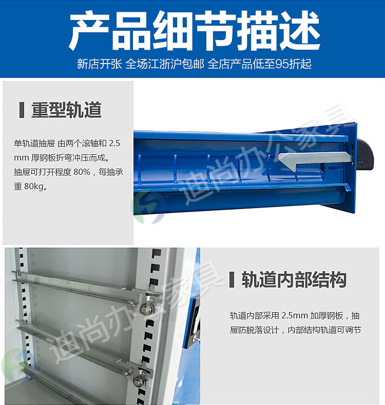采用优质冷轧钢板经剪切,冲压,折弯,焊接,装配等九工位精制而成 采用自动喷淋式磷化 粉末静电喷涂,涂膜不易脱落,环保耐用,无毒害,无气味,光洁美观 外观精美,安全系数良好 坚固耐用,承受力强,可存放大量文件资料不变形