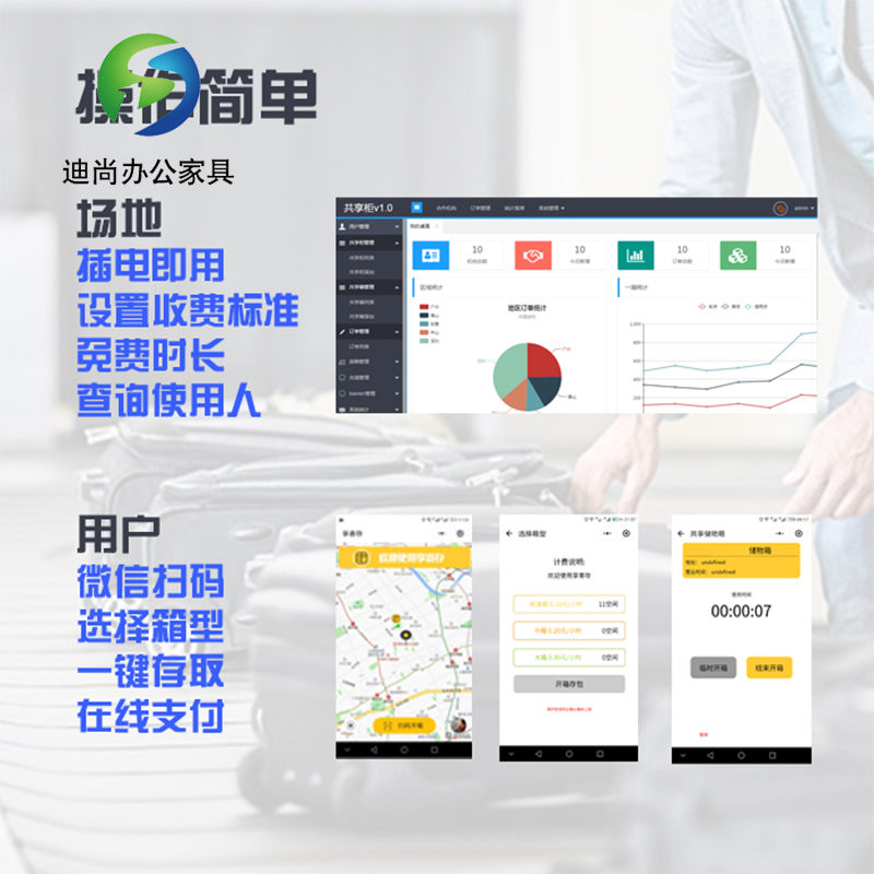 投放公共场合、实现收益 采用优质冷轧钢板经剪切,冲压,折弯,焊接,装配等九工位精制而成 采用自动喷淋式磷化 粉末静电喷涂,涂膜不易脱落,环保耐用,无毒害,无气味,光洁美观 外观精美,安全系数良好 坚固耐用,承受力强,可存放大量物品不变形