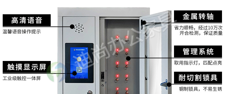 智能管理钥匙存放,实现后台日志记录,授权人员 采用优质冷轧钢板经剪切,冲压,折弯,焊接,装配等九工位精制而成 采用自动喷淋式磷化 粉末静电喷涂,涂膜不易脱落,环保耐用,无毒害,无气味,光洁美观 外观精美,安全系数良好 坚固耐用,承受力强,可存放大量物品不变形