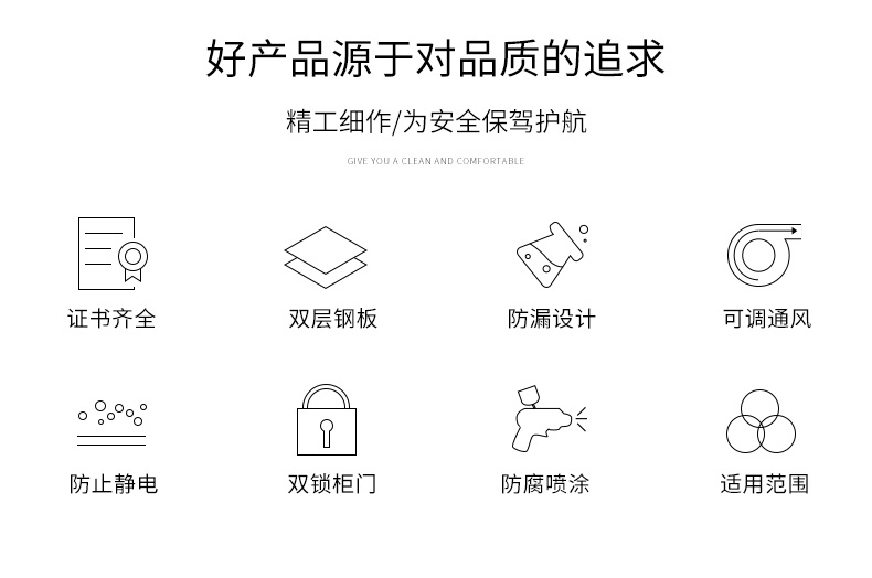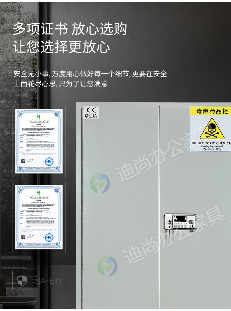 适用范围:实验室、医疗场所、毒品检测处、公安领域等 采用优质冷轧钢板经剪切,冲压,折弯,焊接,装配等九工位精制而成 采用自动喷淋式磷化 粉末静电喷涂,涂膜不易脱落,环保耐用,无毒害,无气味,光洁美观 外观精美,安全系数良好 坚固耐用,承受力强,可存放大量文件资料不变形