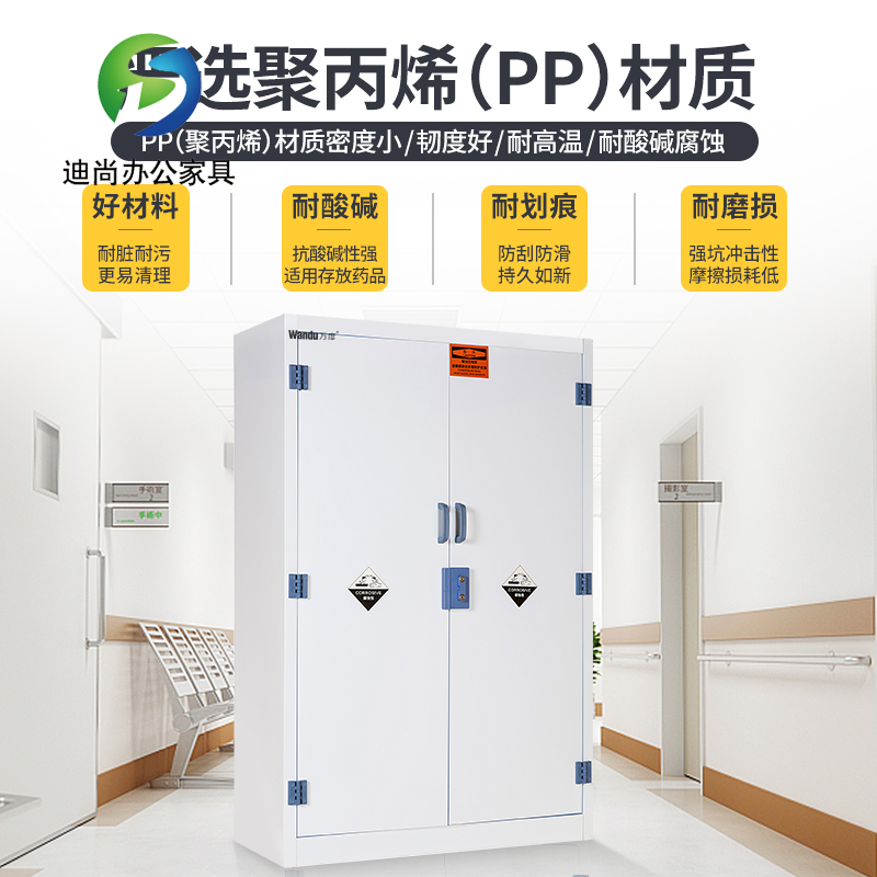 适用范围:实验室、医疗场所等 强酸强碱存储柜,特别针对强腐蚀性化学品的存储和渗漏而设计,可用于各种腐蚀性化学品的存储