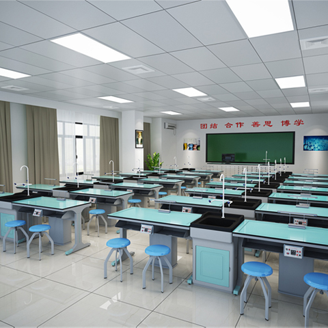 设教师控制台抽屉式总电源,教师用电源交流220V(带漏电保护)、A、B、C、D四组可独立通断的开关(控制学生交流220V电源)。交流220V电源可由教室控制台输出至学生桌控制,(如加配学生低压交直流电源可以由教师总电源调节后输送至学生桌位)实验桌整体由德国进口木工机械设备加工而成,高温封边,自动修边,外型美观,经久耐用,永不脱胶。 给排水系统:选用PP水槽,PP铜质三联水嘴。